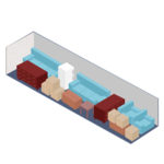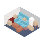 It fits the contents of an entire family room including several small to medium-sized boxes, and items such as mattress sets, sofas, chests of drawers, bookcases, and desks.